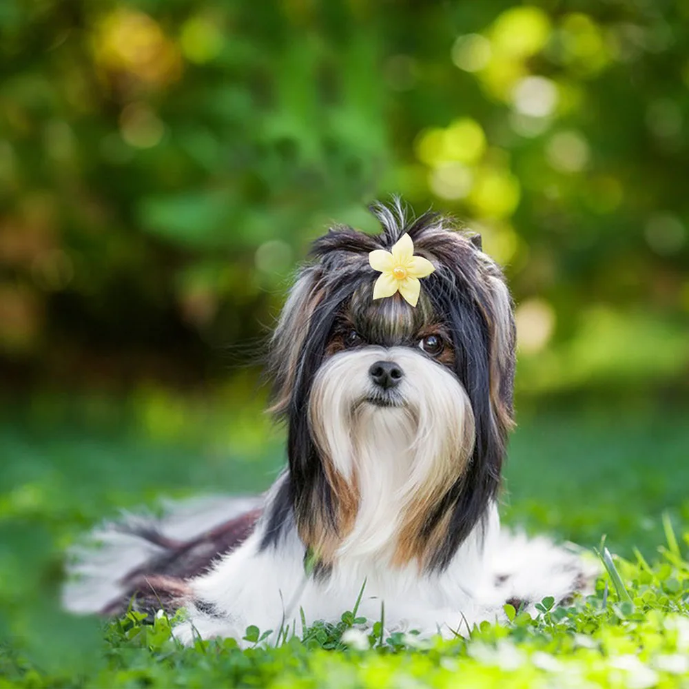 100pcs Cute Lace Dog Puppy Hair Bows Rubber Bands Small Dog Hair Accessories For Dogs Pets Grooming Products Pet Supplies