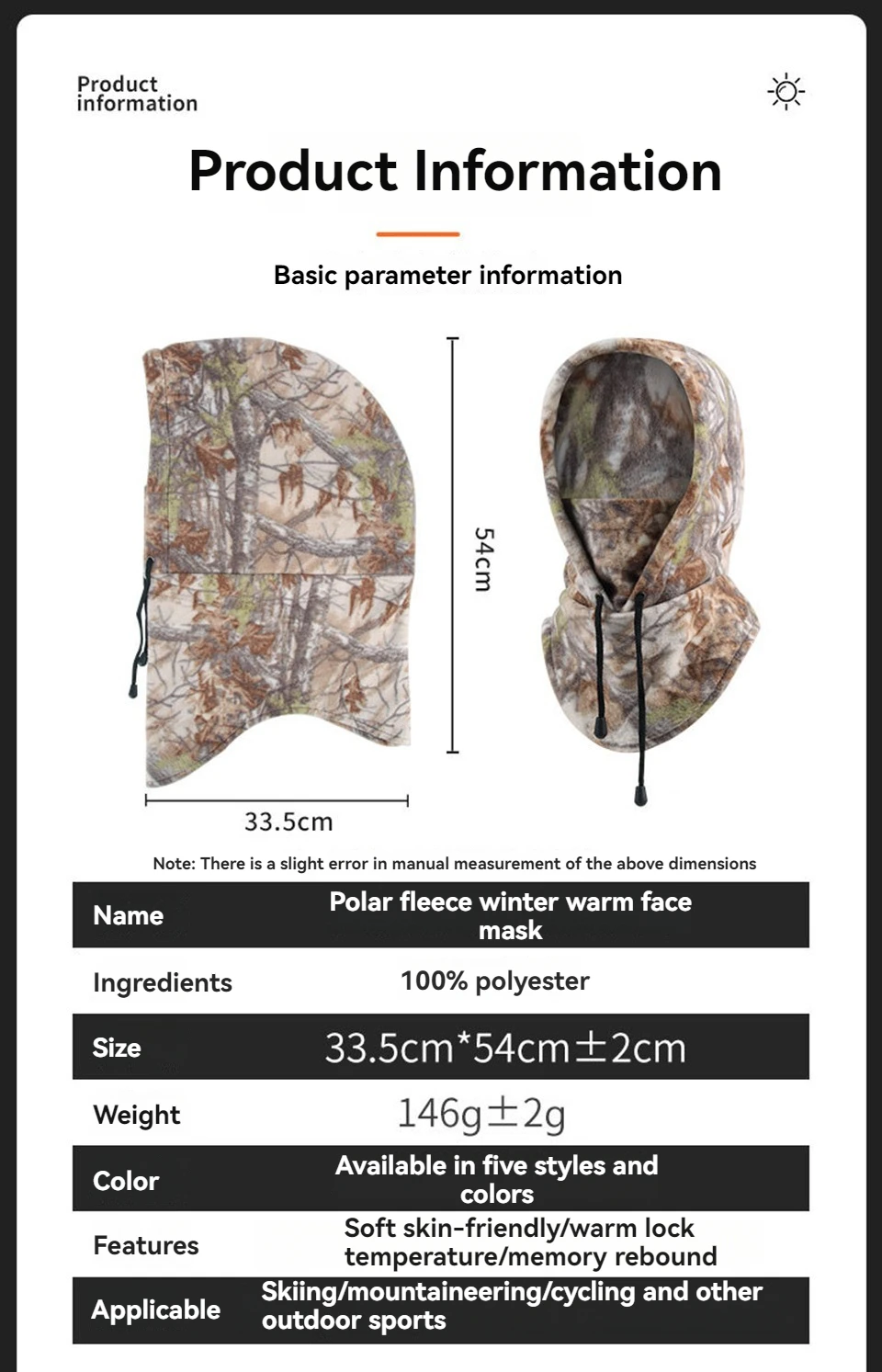 • Type: Full Face Riding Mask Caps