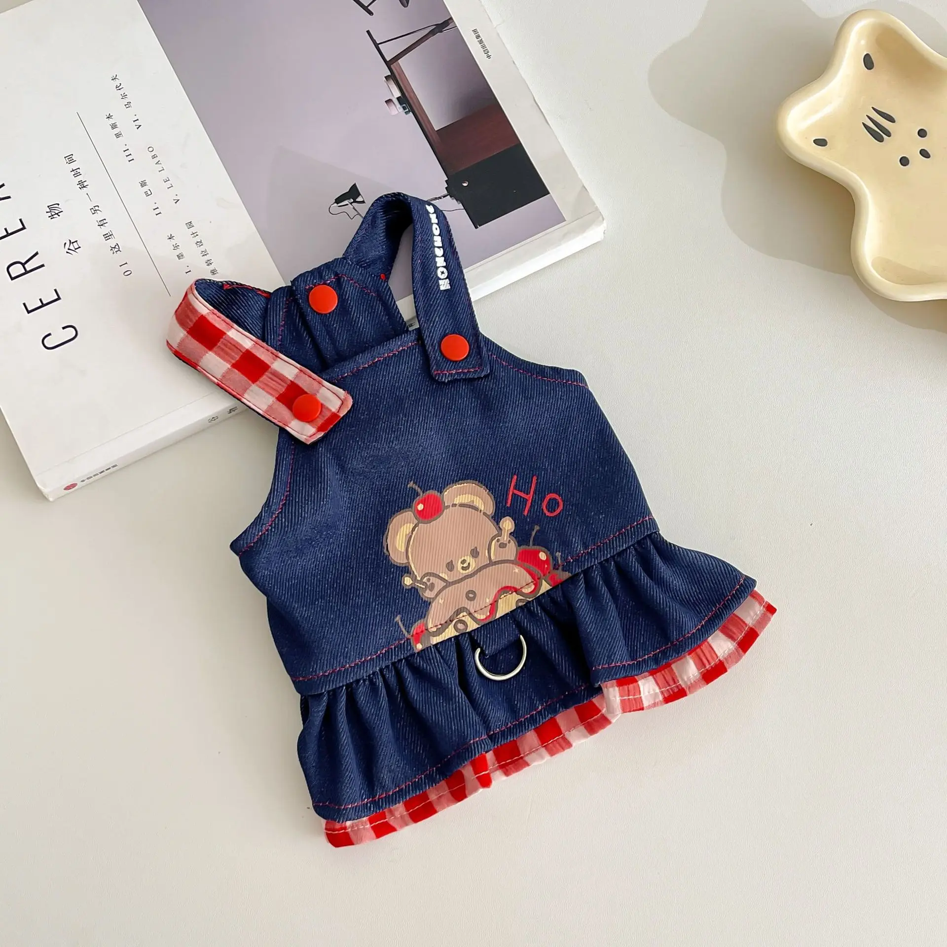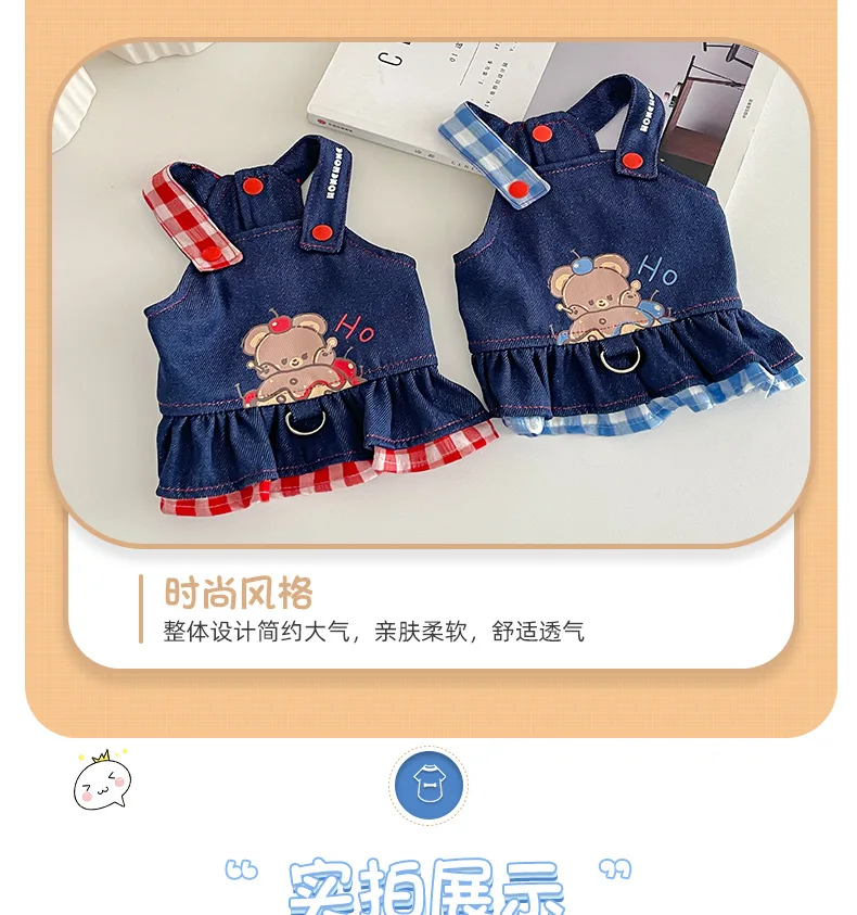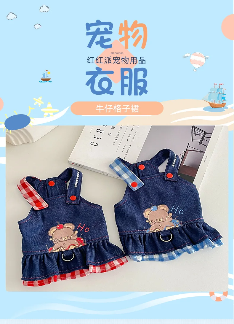 Pet Spring Denim Plaid Skirt Dog Leash Skirt Home Outdoor Sun Protection Vest Dog Dresses for Small Dogs